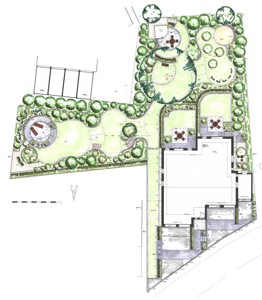 in Funktionsbereiche gegliedert. Der rückwärtige Gartenbereich bietet sowohl durch Hecken