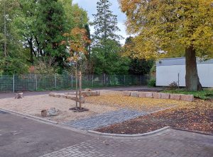 Naturnahes Lernen draußen im Freien. Darauf kann sich die Schülerschaft der Fachschule für Gartenbau ab sofort freuen. Nach kurzer Bauphase erfolgte Mitte Oktober die Abnahme des von uns geplanten Grünen Klassenzimmers. Im Frühjahr 2026 wird, unter Einbeziehung der Schülerschaft, die Bepflanzung stattfinden.